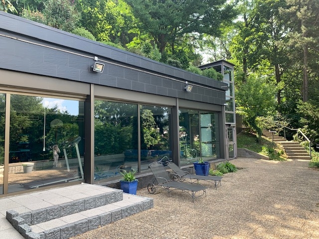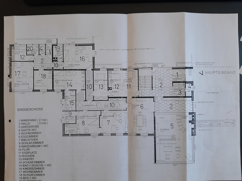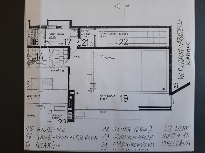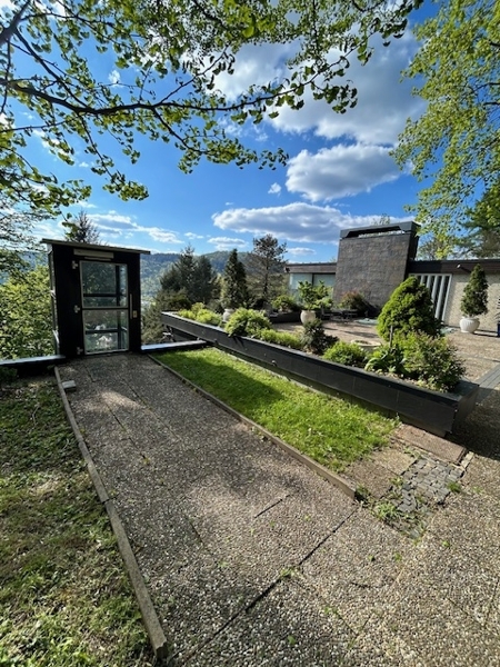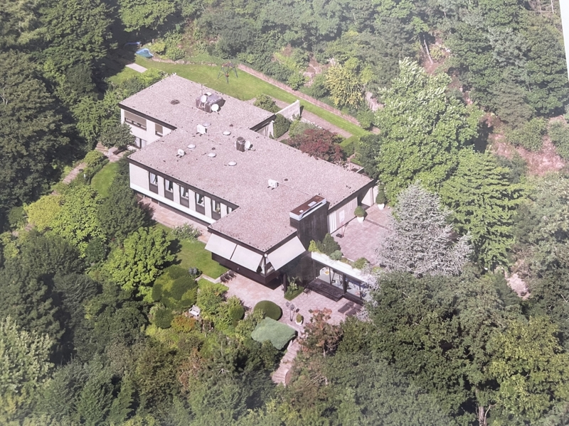 Die im Jahre 1969 aus Stahlbeton erbaute Villa hat zwei Ebenen. Neben der Hauptwohnung mit ca. 490m² bietet das Objekt pro Etage eine Einliegerwohnung mit eigenem Eingang (EG 53m² / UG 89m²), die als Angestelltenwohnung, Büro oder Gästebereich genutzt werden können. Es wurden fortlaufend Modernisierungen vorgenommen.