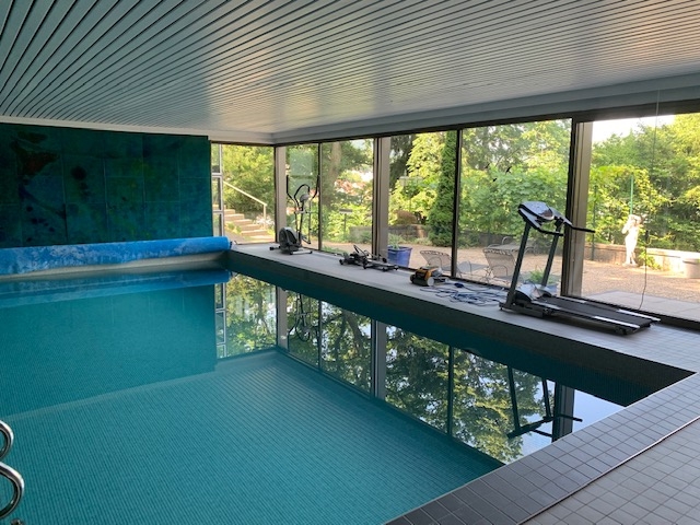 Highlight der Immobilie ist sicherlich der Wellness-Bereich mit Hallenbad, Sauna und Solarium im UG des Hauses. Dank der Fensterfront lässt sich der phänomenale Ausblick zu jeder Jahreszeit genießen.