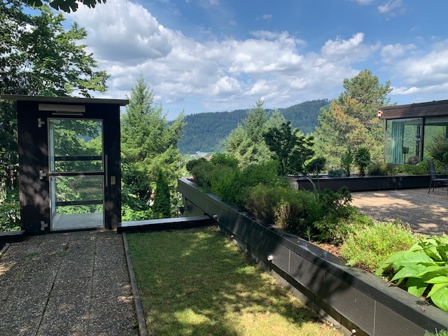 Die Ruhe beginnt auf der privaten Zufahrtsstraße – und erstreckt sich nicht nur auf etwa 635 m² Wohnfläche, sondern auch auf eine über 37.000 Quadratmeter Wald- und Parkanlage. Teilweise als Exotengarten angelegt, ist auch eine Bewässerungsanlage mit Quellwasser-Reservoir installiert. Neben dem Pumpenhäuschen befinden sich eine Holzblockhütte und ein Gartenhaus im nördlichen Teil des Parks.