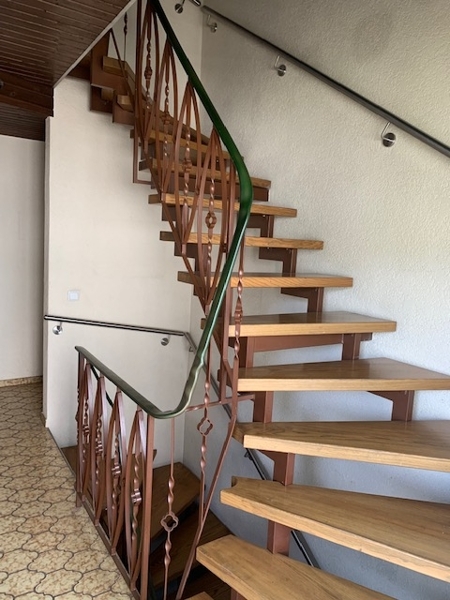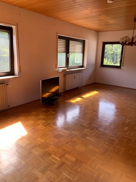 Im Obergeschoss des Hauses ist eine weitere 3 ZKB - Wohnung mit Balkon, großer Wohn-Essbereich, die Küche, das Elternschlafzimmer, das Badezimmer und ein Kinderzimmer.