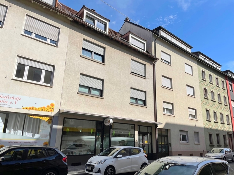 Dieses Wohn- und Geschäftshaus befindet sich in Karlsruhe-Mühlburg und teilt sich in