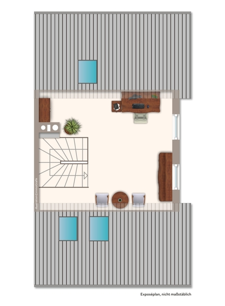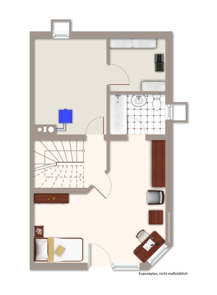 Das Dachgeschoss ist ausgebaut als Studio, mit Kochnische und kleinem Badezimmer.