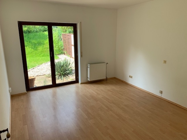 Im Garten- / Erdgeschoss befindet sich das großzügige sonnige Wohnzimmer, die Küche, zwei Schlafzimmer, das Bad mit Wanne und Dusche, ein Abstellraum und eine Terrasse.