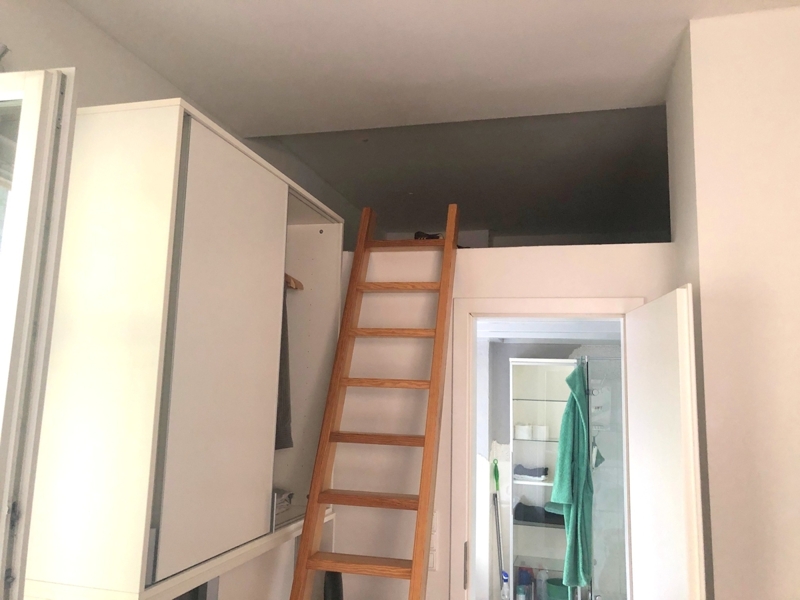 Die Wohnung besteht aus einem geräumigen Zimmer das einen sehr guten Schnitt hat. Somit gibt es einen Eingangsbereich einen Koch-und Essbereich und einen Wohnbereich von dem aus Sie auf den idyllischen Balkon mit Blick in die Hinterhöfe gelangen. Das Tageslichtbad verfügt sowohl über eine Dusche als auch eine Badewanne. Die Ausstattung ist sehr hochwertig und ansprechend aber individuell. Über dem Bad wurde eine Zwischendecke eingezogen, über der sich ein Schlafbereich befindet. Dieser kann ebenso als Stauraum genutzt werden.
