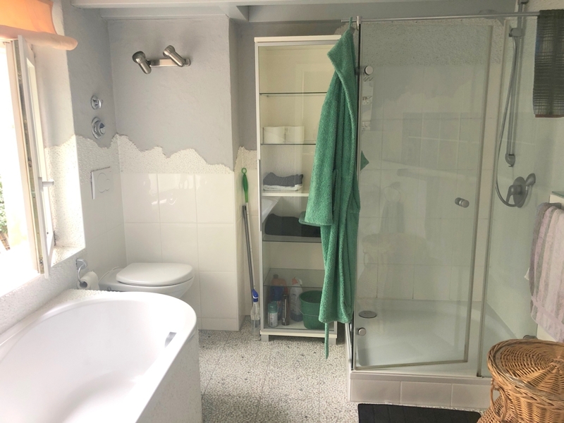 Tageslichtbad mit Badewanne und extra großer Dusche