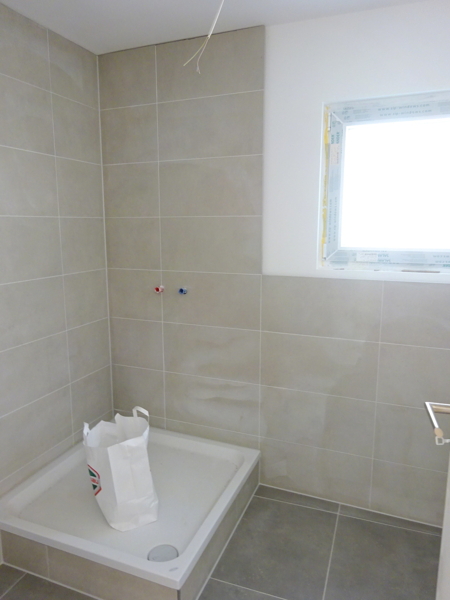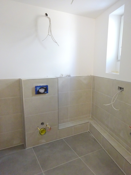 Tageslichtbad mit Dusche, Waschbecken und WC