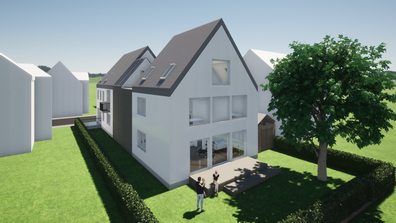 Dieses moderne 3 Familienhaus entsteht zusammen mit einem Einfamilienhaus in einer ruhigen, familienfreundlichen Straße von Rheinstetten-Mörsch.