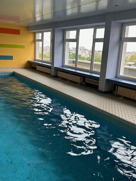Besonders hervorzuheben sind das hauseigene, für alle Bewohner nutzbare Schwimmbad und die Sauna des Wohnblocks.