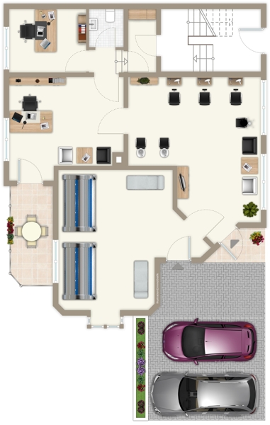 - Gute Parkmöglichkeiten durch eigene Parkplätze