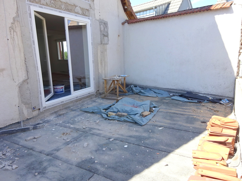 Die Dachterrasse ist zur Hälfte überdacht und wird mit einem Lärchenholzbelag o.ä. ausgestattet.