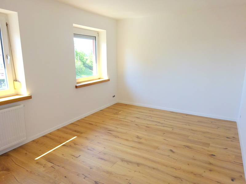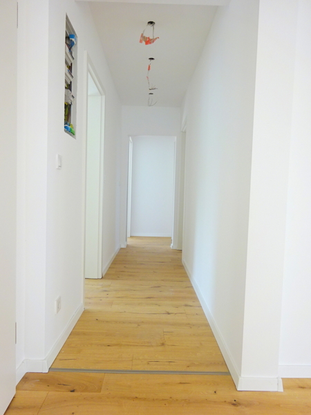 Die Böden sind mit hochwertigen Eichendielen ausgelegt und die Wände mit Glattputz versehen. Dies verleiht der Wohnung einen modernen, hochwertigen und gemütlichen Charme. Die Dachterrasse erhält einen robusten Holzbodenbelag.