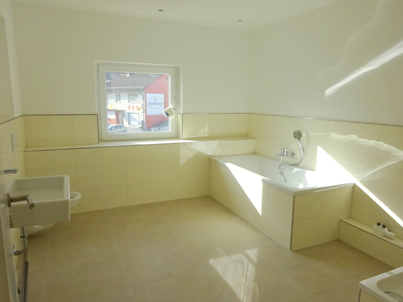 Tageslichtbad mit Dusche, Wanne, Waschbecken und WC