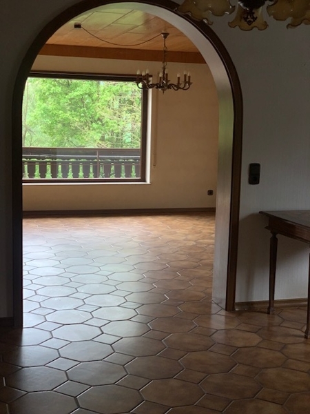 Die Wohnung im Erdgeschoss ist aufgeteilt in vier Zimmer (davon zwei Zimmer mit Balkon), Küche, Badezimmer, Gästetoilette und Flur.