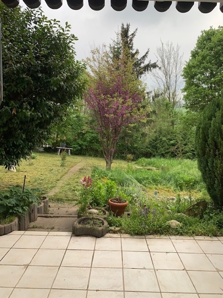 Die Gartengeschoss-Wohnung besteht aus zwei Zimmern, Küche, Badezimmer, Diele, Wintergarten und Terrasse.
