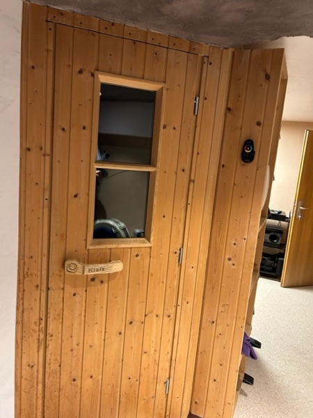 Im EG befindet sich der großzügige Garten und Terrassenbereich und im UG Sauna, Fitnessraum und Dusche/WC.
