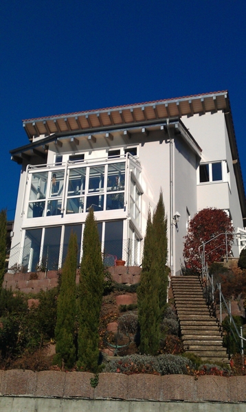 Markeneinbaugeräten, Kinderzimmer mit Schlafpodesten, kleine Galerie mit Blick in den Wohn-Essbereich, fast alle Zimmer sind mit Neckarblick, Wohnraum mit offenem Kamin und nach oben offenem Luftraum, traumhafter Süd -Wintergarten mit Aussen-Markisen, 2 tolle Südwest-Terrassen mit Natursteinbelägen, Doppelgarage.