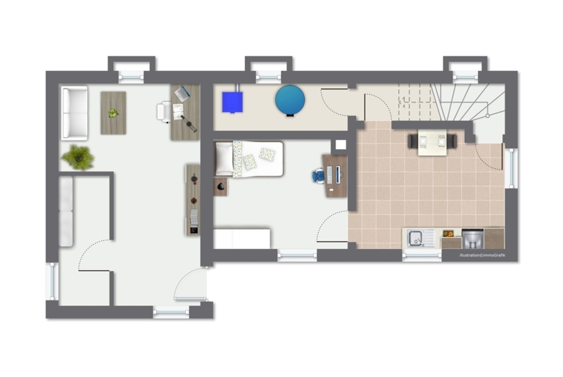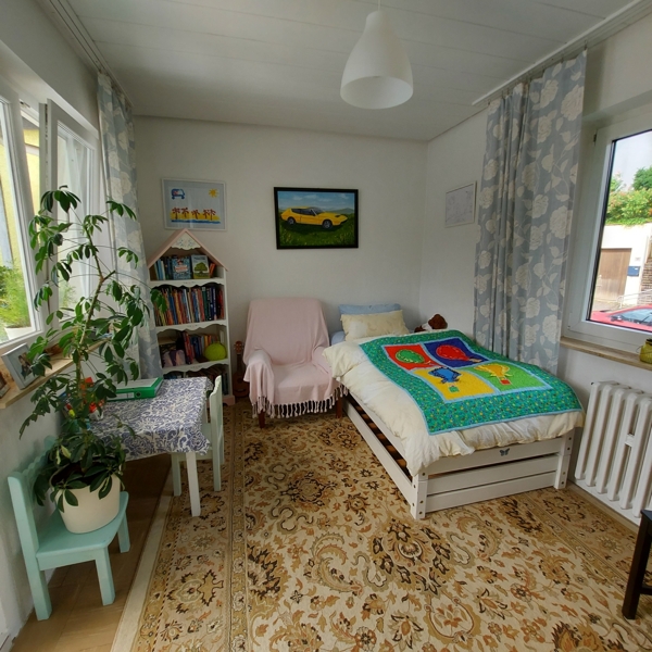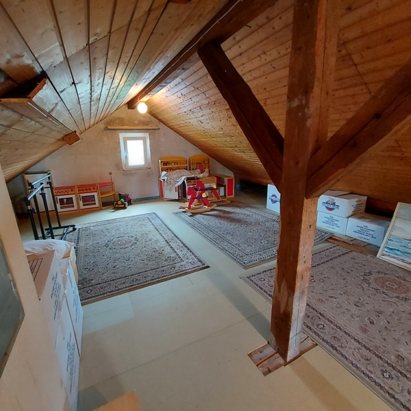 Das großzügige Loft wird derzeit als Spielzimmer genutzt und könnte in zusätzlichen Wohnraum umgewandelt werden. Im Keller befindet sich die in den letzten Jahren erneuerte Heizungsanlage.