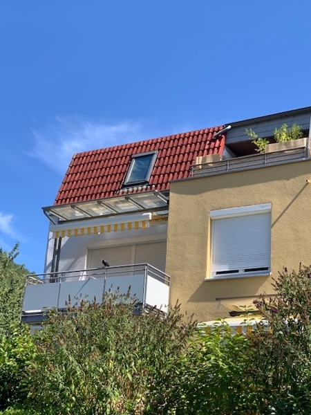 Helle 2-ZKB-Wohnung mit einem Balkon (in der Dachschräge) und tollem Neckarblick. Die Wohnung hat eine Wohnfläche von ca. 66 m² und teilt sich auf in das Schlafzimmer, kombiniertes Wohnzimmer / Küche und ein Tageslicht-Badezimmer mit Badewanne und WC.