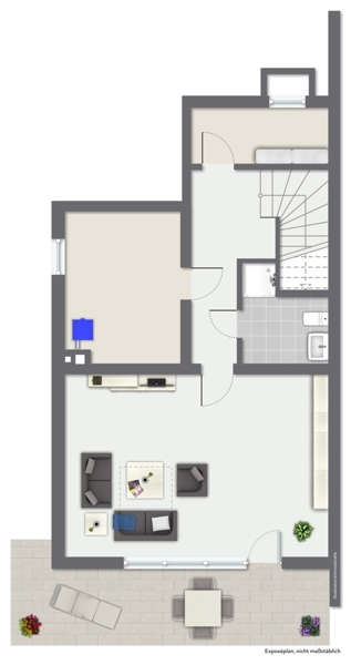 * Untergeschoss: Wohn/ Schlafraum, Dusche/ WC,Flur,Heizraum,Kellerraum und Terrasse